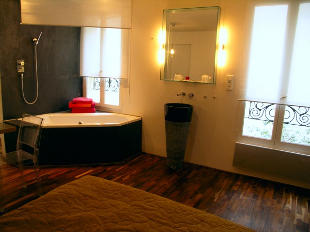 Un bain hydro-massant agrémenté d'essence de roses et une bouteille de champagne servie en guise de bienvenue vous feront rapidement oublier votre décalage horaire. L'endroit fut conçu avec amour et pour des amoureux, et vous pouvez compter sur la magie de Montmartre pour faire le reste...